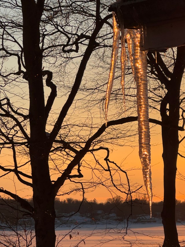 The final image in this post reflects the significant melting that began today, and the warmer, lengthening days ahead. There are already puddles on the lake ice, dirty drifts by the roadside and dry salty pavement on the roads
