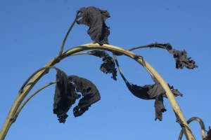 After what feels like weeks of rainy days the leaves have fallen on the Bluecircle. This brings to a close the farm’s second year, and the image of withered sunflower leaves against the autumn sky is a fitting close to the year. It was a difficult Summer – only the late summer weeds thrived.